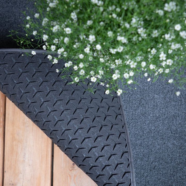 Termomatto yhdistää lämpimän huopapinnan ja säänkestävän umpisolupohjan. Se on erinomainen valinta ulkokäyttöön, koska se on sekä kestävä että mukava jalalle.